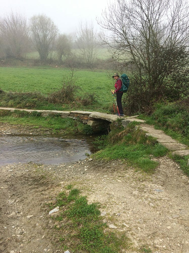 Snippet Two: We have fallen in love with fellow pilgrims. Remember I told you that we bid adieu to Patrick and Jessica. They were going onto Sarria as we struggled into Tricastille last night. Ernest and I showered, rested and then walked a short distance to a pilgrim’s menu last night. It was chilly to us so we sat inside and ordered. Outside on the patio we watched the waiters set up a table for about 12 young pilgrims. We smiled and then looked again. There were three of our fellow pilgrims and two of them were Jessica and Patrick. I tapped on the window and when they saw us they jumped up from their chairs and ran inside and we hugged and jumped up and down and acted like it had been YEARS since we had been together ( Actually less than 12 hours). Wondered if this will be what it is like when we get to heaven and see each other.