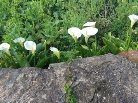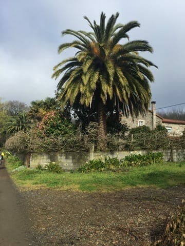 We trekked today from Arzua to o Pedrouzo. Spanish weathermen and American weathermen are from the same school. There was 100% chance of rain today and frigid weather. God decided to bless us with NO rain and the sun shone most of the day. Do not think for one minute that we didn’t appreciate God’s grace. The Way is beautiful. Red tiled roofs are prevalent; palm trees; magnificent Calla lilies. Then we transversed through cathedral forests. The ascents and descents are easy and gradual. It was a good day. We are tired but we recover quickly. We are staying in a Casa Rural named Pension Maribel. It is delightful.